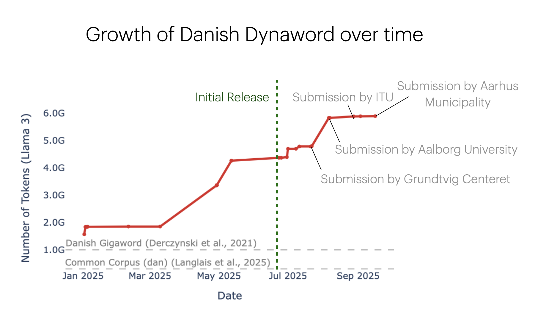 - Enevoldsen, K., Jensen, K. N., Kostkan, J., Szabó, B., Kardos, M., Vad, K., Núñez, A. B., Barmina, G., Nielsen, J., Larsen, R., & others. (2025). Dynaword: From one-shot to continuously developed datasets. arXiv Preprint arXiv:2508.02271. — Submitted at LREC